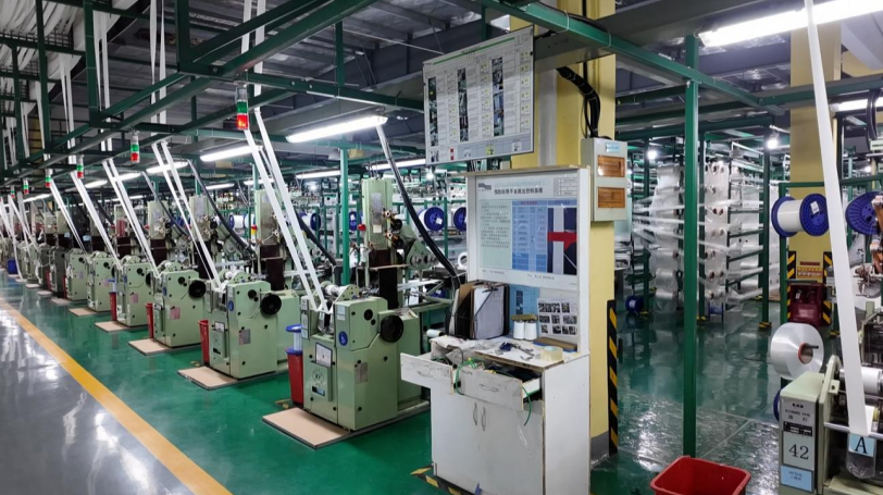 同样热火朝天的出产场景,正在郎溪飞马工业织品无限公司织制车间上演。红绿灯交替闪灼,一卷卷汽车平安带织带如银色瀑布倾泻而下。工人们穿越其间,细心放哨设备运转形态,认实查对每一项工艺参数,敷衍了事地守护着出产流程的顺畅取平安。